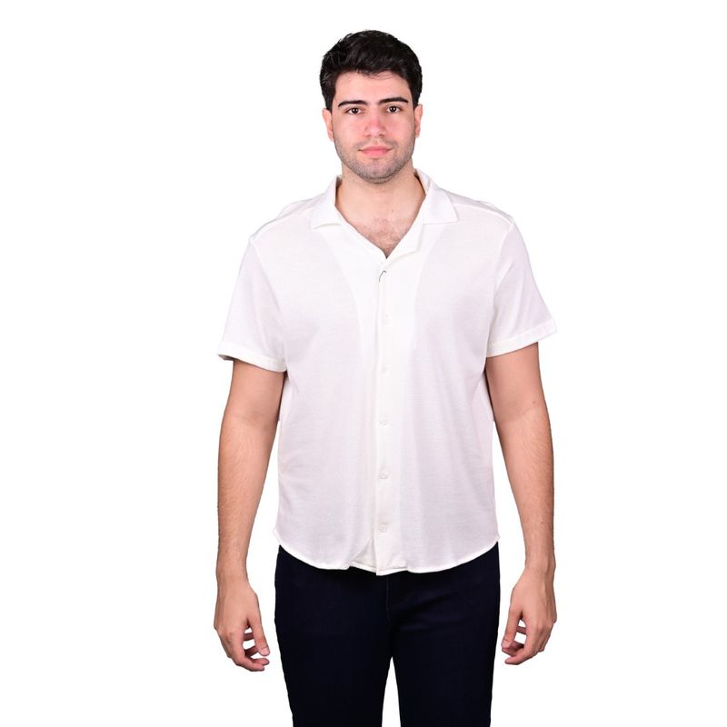La Camisa Manga Corta Marfil Diamond Texturado Relaxed Hombre Connection combina diseño moderno con comodidad. Su corte recto y cuello estilo cubano o de solapa abierta ofrecen un look relajado y sofisticado, ideal para ocasiones casuales o semi-formales. La textura piqué de la tela aporta elegancia y un detalle distintivo que resalta la calidad de la prenda, mientras que el color marfil liso facilita su combinación con diferentes prendas.