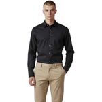 Esta camisa manga larga basic en color negro liso combina elegancia y simplicidad, siendo una prenda versátil para múltiples ocasiones. Su corte clásico y cuello tradicional con puños abotonados ofrecen un calce cómodo y un acabado prolijo, ideal para armar looks formales, semi-formales o casuales según la necesidad.