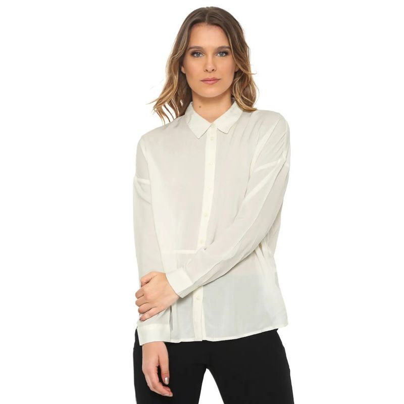 Esta camisa de manga larga blanca para mujer combina elegancia y versatilidad, ideal para cualquier ocasión, desde un día laboral hasta un encuentro casual. Su diseño clásico y limpio permite adaptarse a múltiples estilos, aportando frescura y sofisticación a tu vestuario.