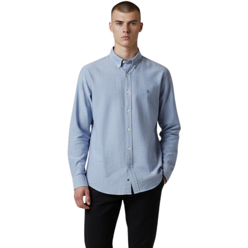 Camisa de manga larga para hombre con un elegante tono azul marino, que combina un estilo clásico con un diseño moderno y versátil. Su corte regular proporciona comodidad y libertad de movimiento, mientras que el cuello abotonado (button-down) y el cierre frontal de botones aportan un detalle refinado, ideal para atuendos formales e informales.
