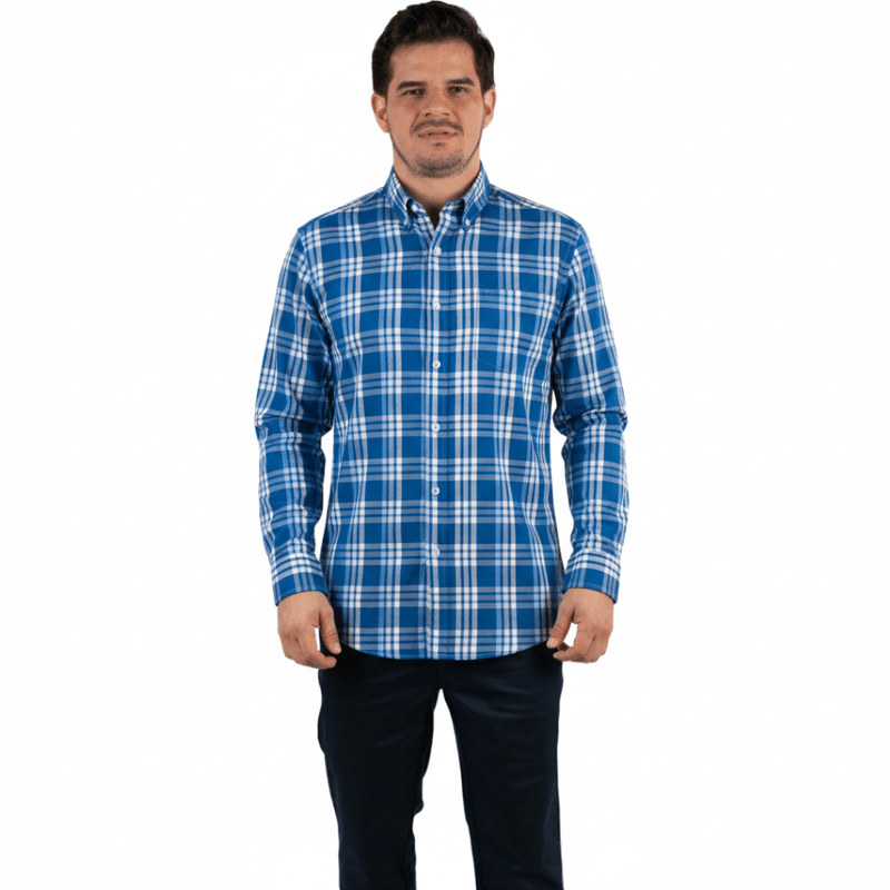 El cuello abotonado (button-down) ofrece un acabado pulido y asegura que la camisa mantenga su forma, mientras que los botones frontales blancos agregan un detalle limpio y elegante. Las mangas largas con puños abotonados permiten un ajuste cómodo y práctico, manteniendo la funcionalidad y el estilo en cada movimiento.