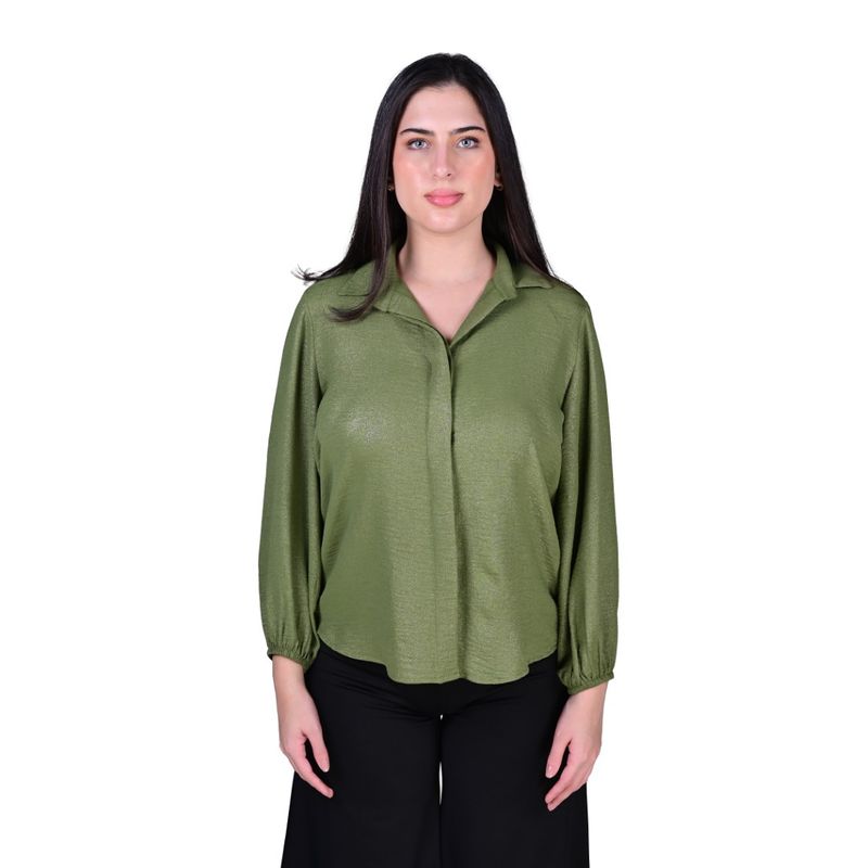 La Camisa Manga Larga En Crepé Laminado Verde Musgo Mujer L'exclusif destaca por su textura con sutil brillo que aporta sofisticación y modernidad. Su color verde musgo es versátil y fácil de combinar, ideal para quienes buscan un estilo elegante y contemporáneo. Cuenta con cuello de solapa clásico y mangas largas abullonadas con puños elásticos que ofrecen volumen y comodidad. El cierre frontal con botones permite un uso práctico y un acabado pulcro en cualquier ocasión.