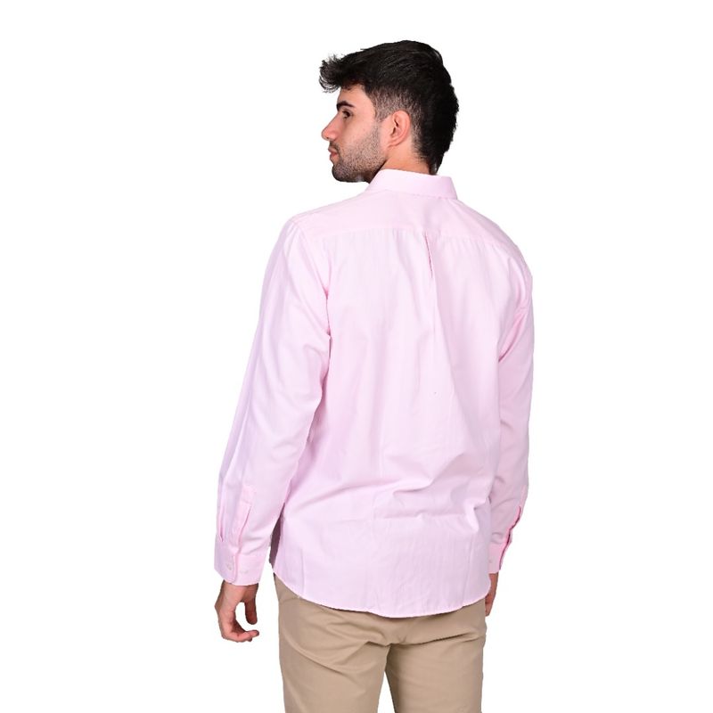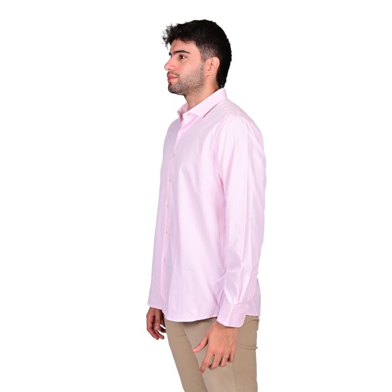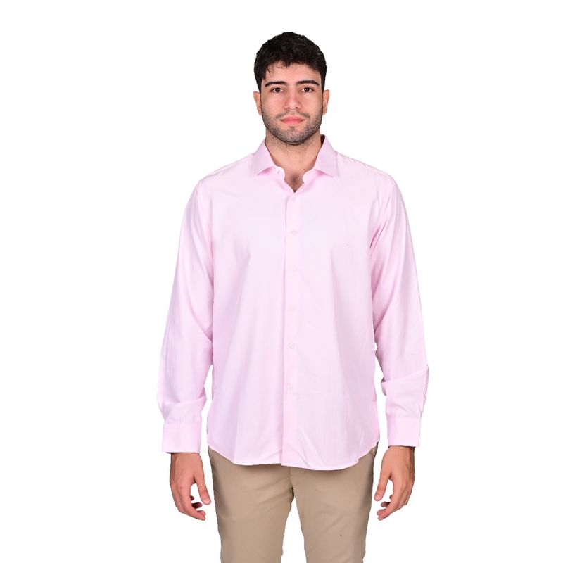 Esta camisa presenta un diseño liso en un tono rosa claro, ideal para quienes desean aportar color y distinción a su guardarropa formal. Cuenta con un cuello clásico con puntas que aporta estructura y elegancia al conjunto. La abertura frontal está compuesta por una fila de botones que se extiende desde el cuello hasta el dobladillo, facilitando su uso y ajuste.