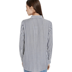 Esta camisa de manga larga con rayas ofrece un diseño clásico y versátil, ideal para looks elegantes o casuales según la ocasión. Su corte favorecedor permite combinarla con diversas prendas, aportando un toque de estilo cuidado y moderno al vestuario femenino.