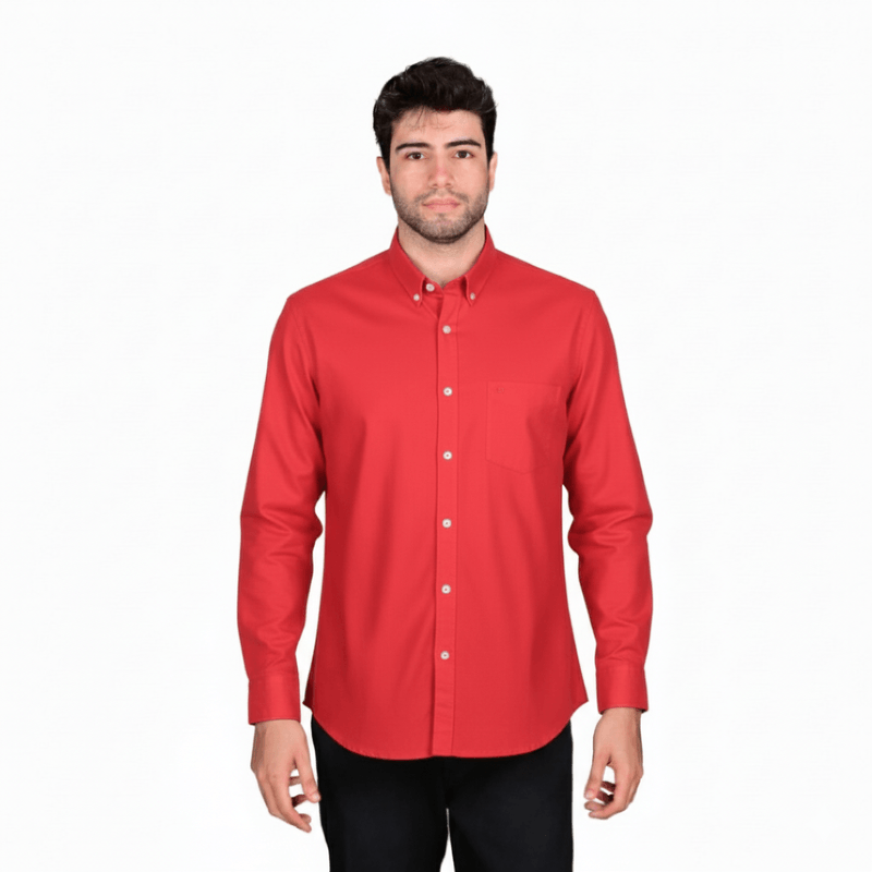 La Camisa Manga Larga Slim Fit Roja para Hombre Oscar De La Renta combina un diseño clásico con un corte recto que se adapta cómodamente a la figura, ideal para un look casual o semi-formal. Su color rojo aporta un toque moderno y elegante.