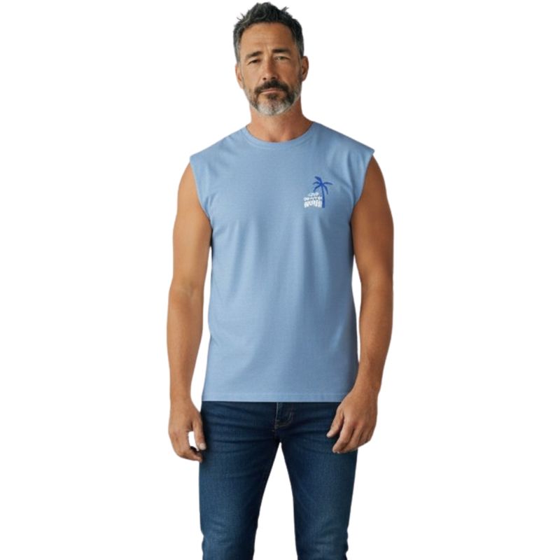 La Camisilla Back Estampado Graph Ocean Regular Hombre Beverly es una prenda diseñada para acompañarte en los días de calor con un estilo fresco, relajado y moderno. Su diseño incorpora un estampado minimalista en el pecho, compuesto por una palmera y el texto “DREAM ON” en blanco y azul, lo que aporta un toque de inspiración y un aire veraniego sin recargar el look.