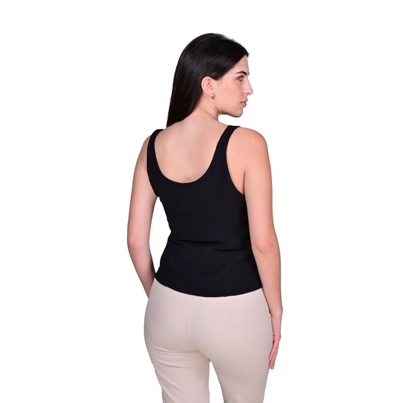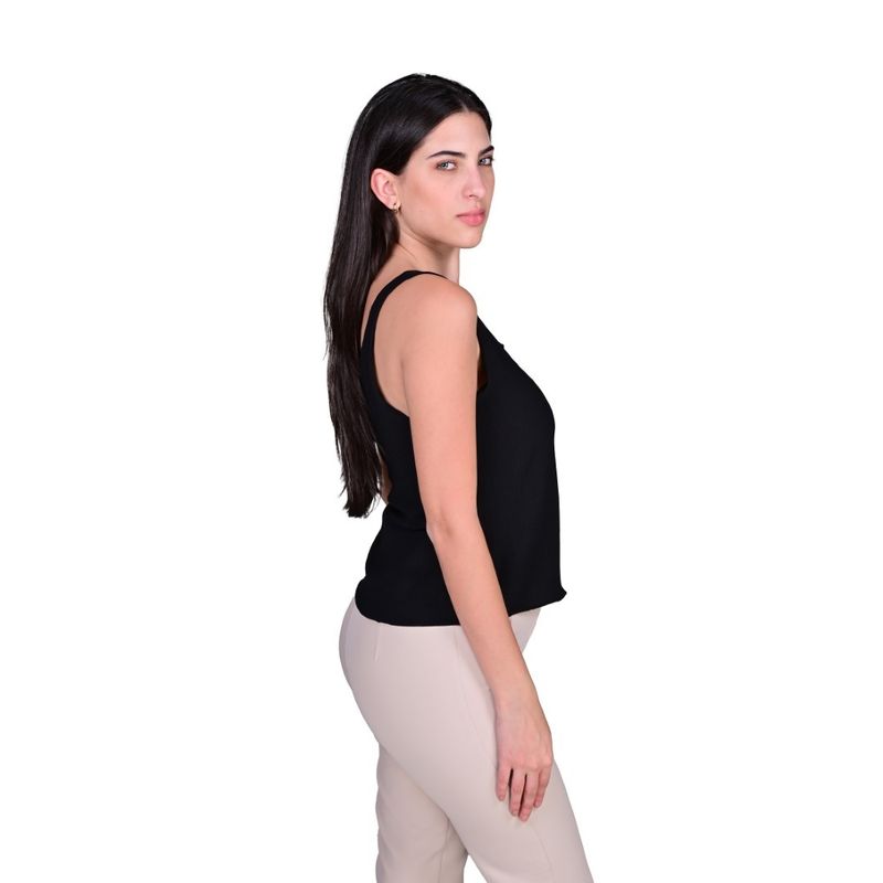 Descubrí la elegancia y versatilidad de esta camisilla negra de doble crepe para mujer de la marca L'Exclusif, diseñada para un ajuste ceñido que realza la figura con un estilo moderno y sofisticado. Su cuello cuadrado y diseño sin mangas la convierten en una prenda ideal para combinar en distintas ocasiones y temporadas.