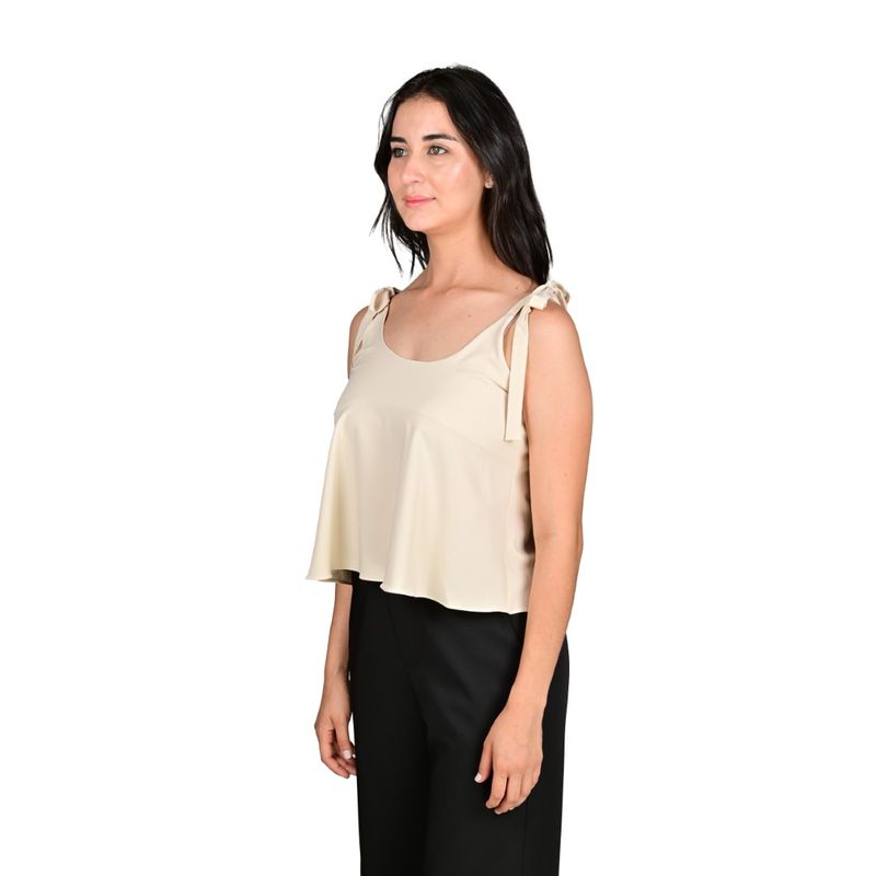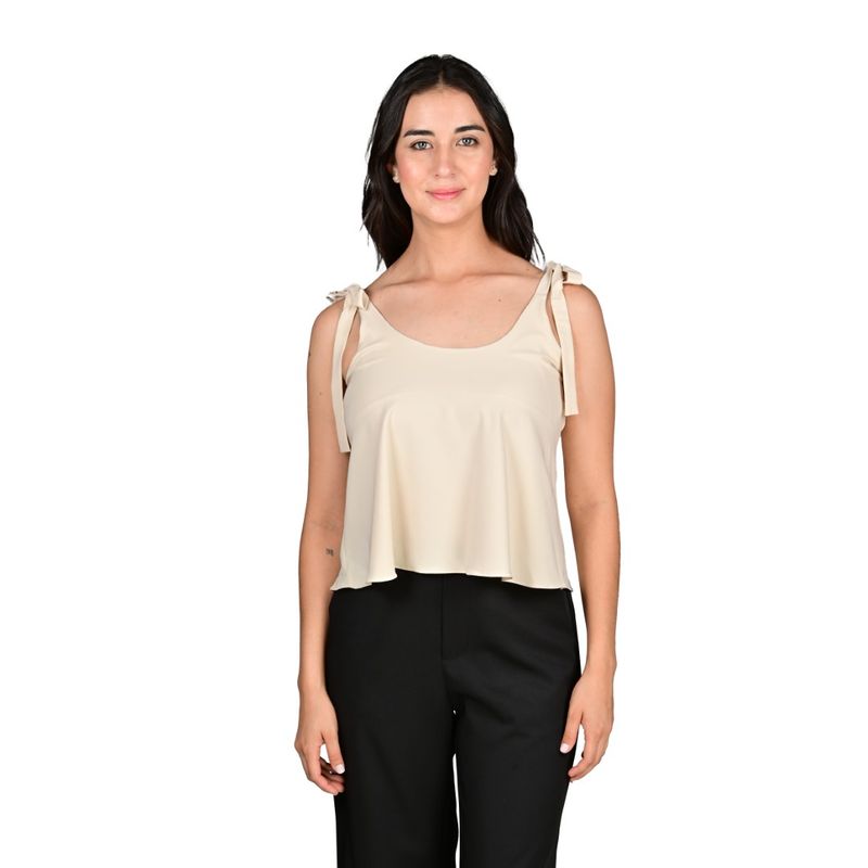 Esta camisilla de mujer en tono beige es una pieza versátil y elegante, ideal como prenda básica para diferentes ocasiones. Su corte fluido proporciona comodidad y libertad de movimiento, mientras que los tirantes de lazo ajustables en los hombros permiten un ajuste personalizado y aportan un detalle femenino sutil. El escote redondo le da un acabado clásico que combina fácilmente con pantalones, faldas o shorts, convirtiéndola en una prenda clave para un look equilibrado y sofisticado.