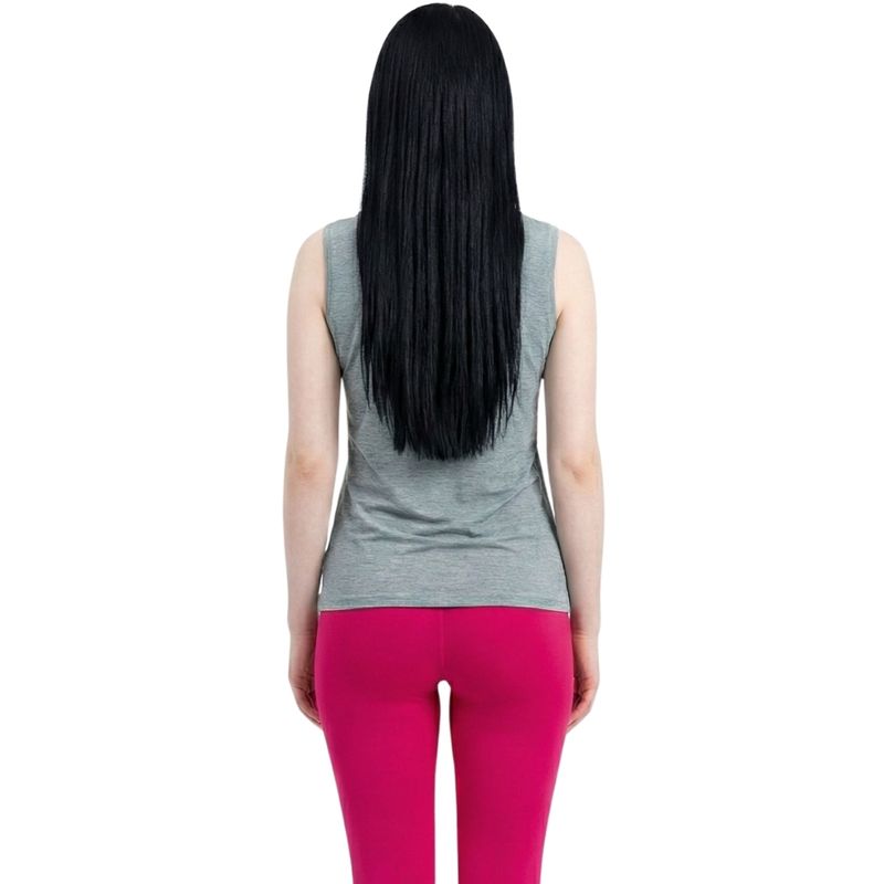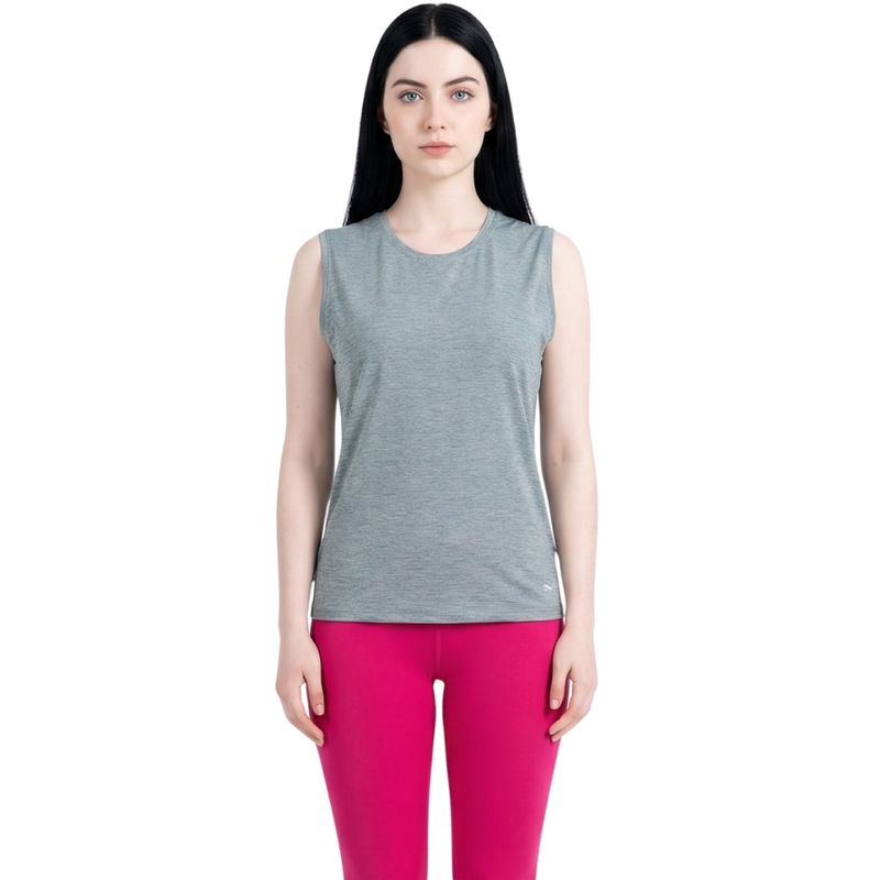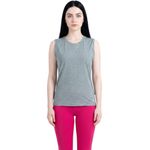 Cuenta con un diseño versátil y moderno, con acabado melange que le aporta un estilo dinámico y actual. Su corte sin mangas favorece la ventilación y permite mayor movilidad, siendo perfecta para mantener confort durante actividades físicas.