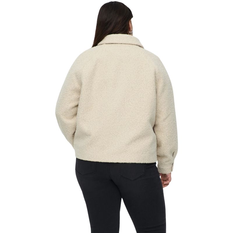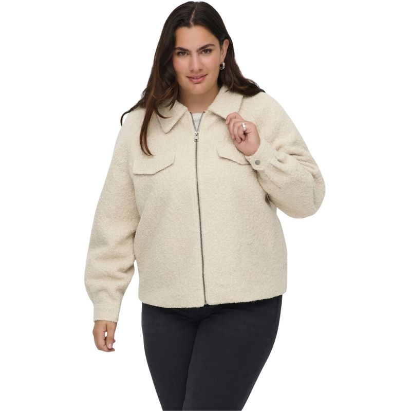 La Campera Carmalo Short Boucle Jacket de Carmakoma es una prenda moderna y elegante, diseñada especialmente para mujeres de talles plus que buscan realzar su estilo con comodidad. Su confección en tejido bouclé aporta una textura distintiva con acabado rizado, brindando un look sofisticado y actual. El diseño corto con cuello extendido y cierre frontal aporta una silueta favorecedora, mientras que los bolsillos en el pecho suman practicidad y estilo.
