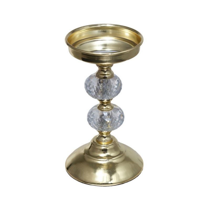 Candelabro compacto con diseño elegante y funcional, ideal para añadir un toque decorativo y sofisticado a cualquier ambiente. Sus dimensiones de 11x10.19x11 cm permiten colocarlo sobre mesas, estantes o consolas, brindando un punto de luz decorativo que complementa la ambientación de interiores.