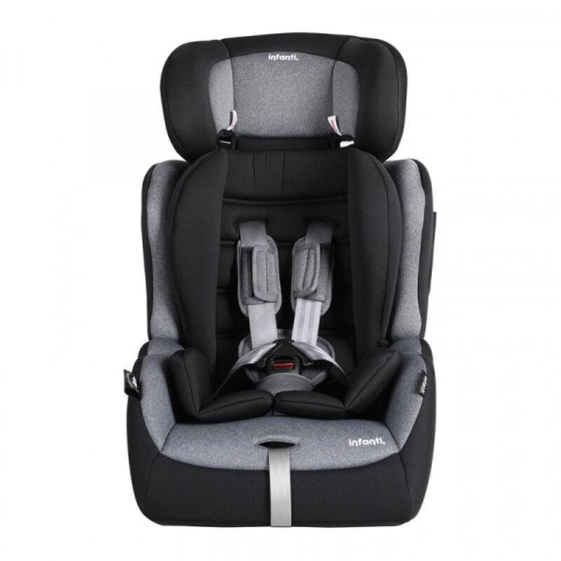 Cuenta con protección lateral contra impactos, un arnés de 5 puntos de sujeción y clip de fijación para el cinturón del auto. Su funda es desmontable de forma sencilla, para poder lavarla.