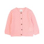 El Cardigan Spirit Rosado de Ficcus es una prenda delicada y elegante, diseñada especialmente para niñas que buscan confort y estilo en su día a día. Confeccionado en punto calado con un hermoso patrón de rombos, combina un look clásico con detalles modernos. La manga larga abullonada aporta suavidad y feminidad, mientras que el cuello redondo y los bordes festoneados completan un acabado refinado y cuidado. Ideal para ocasiones urbanas y casuales, este cardigan se adapta fácilmente a distintos estilos y combinaciones.