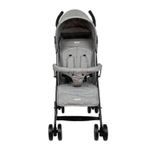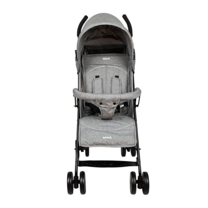 Plegado fácil y compacto. Su respaldo multiposición te permitirá acomodar a tu pequeño de forma cómoda. Además cuenta con un sistema de arnés de 5 puntos. El apoyabrazos delantero es extraíble en caso de que necesites quitarlo, y el reposapiés es ajustable, brindándole a tu pequeño el máximo confort. La capota es de tamaño completo protegiendo a tu bebe de los rayos del sol. Sistema de freno vinculado.