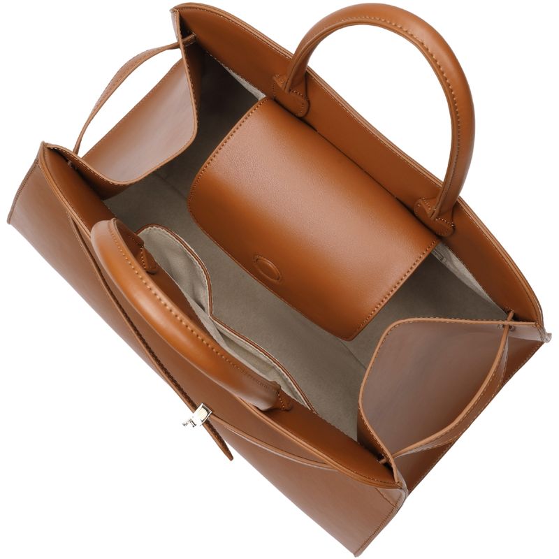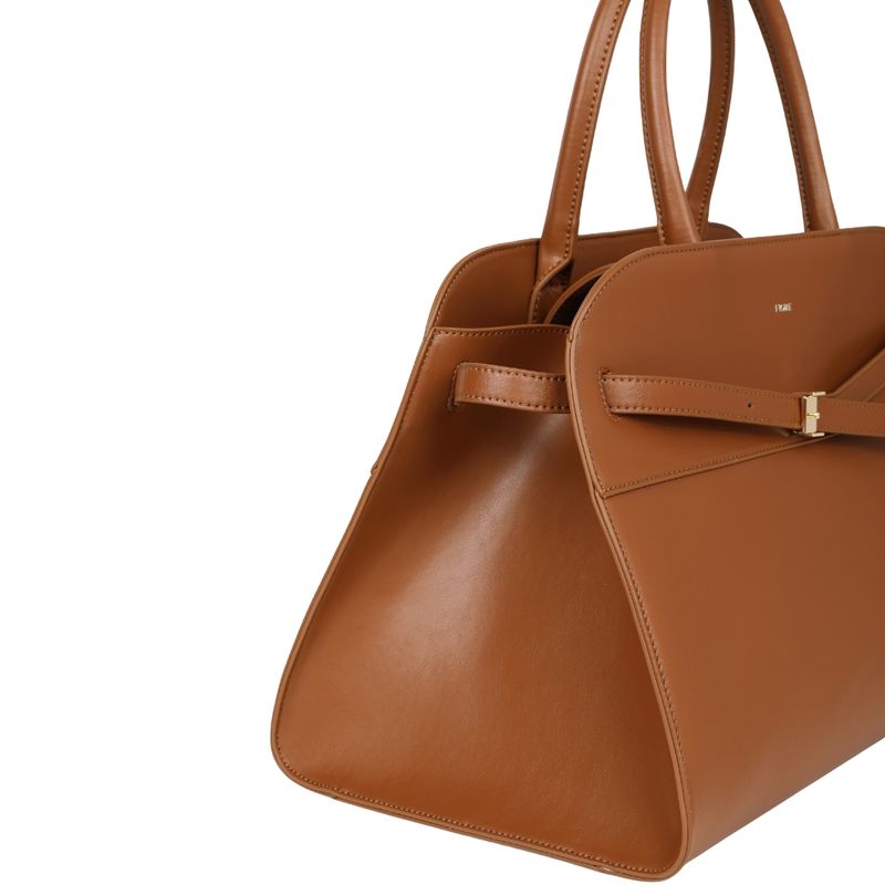 La tonalidad camel es una de las más versátiles, lo que permite combinar esta cartera con una amplia variedad de prendas: