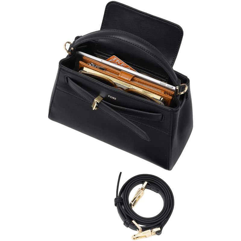 Esta cartera con detalle de cinto negro combina elegancia atemporal y practicidad, ideal para mujeres que buscan un accesorio versátil y con personalidad. Su diseño estructurado brinda un estilo sofisticado, mientras que el detalle de cinto frontal aporta un toque distintivo que realza cualquier conjunto. Es perfecta para complementar looks casuales, de oficina o formales, adaptándose a distintas ocasiones y realzando la presencia del atuendo de manera natural y elegante.