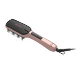 La temperatura se puede regular entre 150ºC y 230ºC, con intervalos de 20ºC, mediante la pantalla digital del mango. Las cerdas están revestidas de cerámica, material que se desliza fácilmente por el pelo y distribuye el calor de forma homogénea sobre tu melena. El resultado es que puedes moldear tu cabello más fácilmente desde el inicio y no lo sometes a estrés térmico.