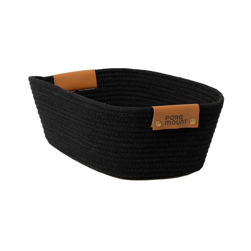 Fabricado en algodón resistente, este cesto garantiza durabilidad y ligereza, manteniendo su forma y acabado a lo largo del tiempo, mientras que las trenzas aportan un detalle estético distintivo.