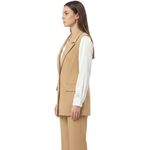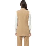 Se puede combinar con pantalones ajustados, leggings o faldas largas para un look armonioso y moderno. También funciona sobre blusas de manga larga o corta y tops variados. Para calzado, se recomienda championes o botines según el estilo deseado. Este chaleco puede utilizarse como capa externa sobre vestidos sencillos, aportando volumen y carácter al conjunto.