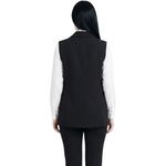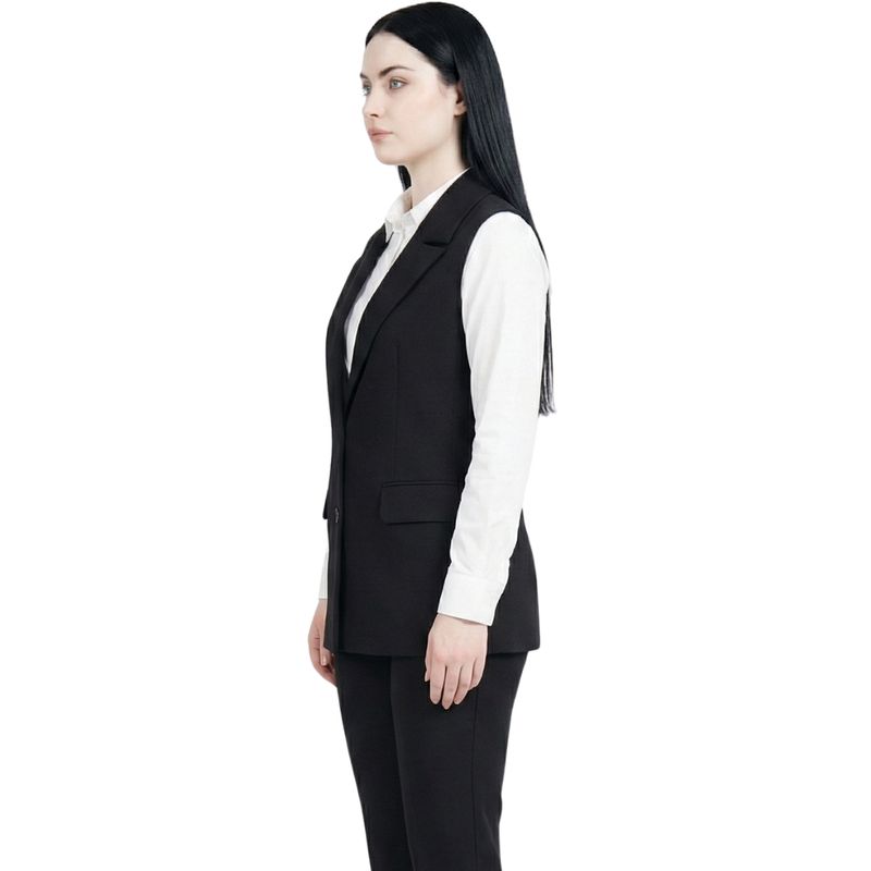 Se puede combinar con pantalones ajustados, leggings o faldas largas para un look elegante y moderno. Perfecto para usar sobre blusas de manga larga o corta, camisas y tops variados. Para calzado, se recomienda usar championes o botines, dependiendo del estilo deseado. Este chaleco también funciona muy bien como capa externa sobre vestidos sencillos, aportando volumen y carácter al conjunto.