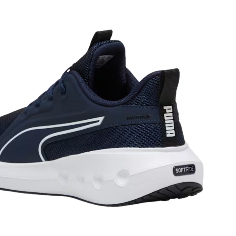 La tecnología Softride de Puma proporciona amortiguación avanzada, absorbiendo impactos y ofreciendo soporte óptimo en cada pisada. La suela está diseñada para ofrecer tracción segura en distintas superficies, evitando resbalones.