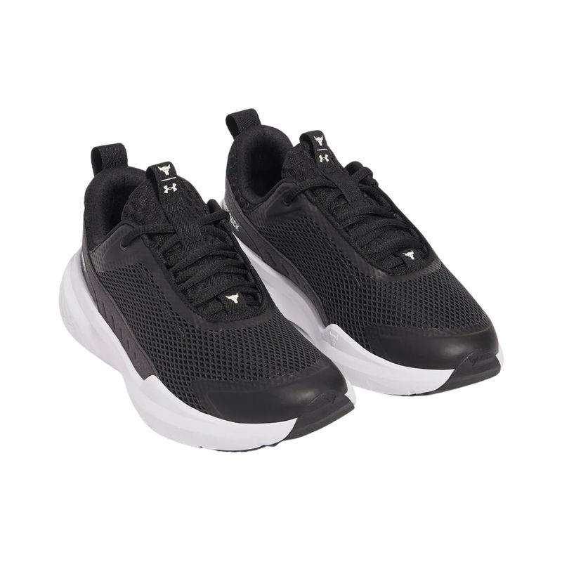El Champion Project Rock Bsr 5 de Under Armour para mujer está pensado para quienes entrenan con intensidad y buscan un calzado que acompañe cada movimiento. Su diseño en negro y blanco combina estilo y funcionalidad, ideal para entrenamientos dinámicos y exigentes. La forma de la punta redonda y el sistema de cordones estándar aseguran un ajuste cómodo y seguro.