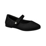 La Chatita Negro Princesa de Klin para niña es un calzado elegante y delicado, ideal para ocasiones especiales. Su diseño tipo bailarina presenta punta cerrada y talón con material de brillantina negra que aporta un toque sofisticado y moderno. La correa sobre el empeine incluye un pequeño detalle de corazón metálico, añadiendo un detalle encantador al calzado.