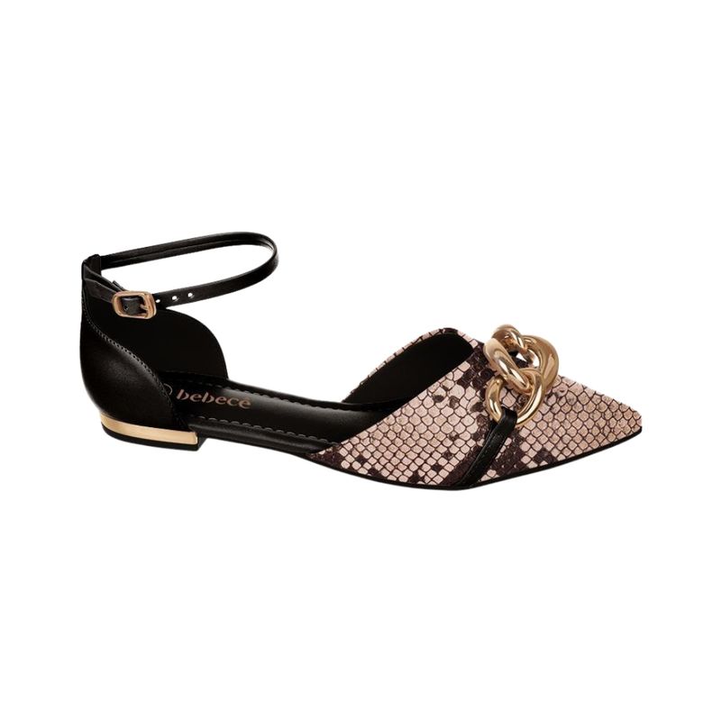 Estas chatitas combinadas con estampado de pitón de la marca Bebece destacan por su diseño moderno, elegante y atrevido. Su puntera puntiaguda aporta un acabado estilizado y femenino, mientras que los detalles en negro combinados con el estampado de serpiente crean un contraste sofisticado y llamativo. La cadena dorada grande en el centro del calzado funciona como adorno principal, agregando un toque de glamour y distinción, mientras que la tira fina ajustable en el tobillo con hebilla dorada garantiza un calce seguro y cómodo.