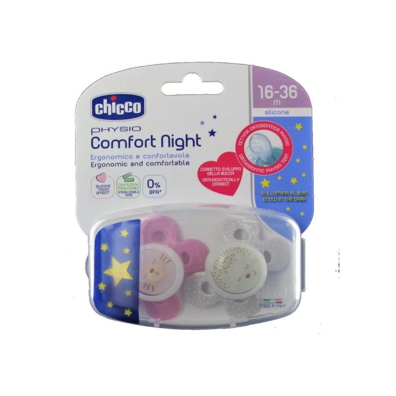 El chupete Comfort Lumi rosa de Chicco, para bebés de 16 a 36 meses, cuenta con una tetina de silicona que favorece una succión natural y cómoda. Su diseño ergonómico y su material respetuoso con la piel del bebé garantizan confort. Además, incorpora un efecto luminoso, facilitando su localización por la noche. Viene en un pack de 2 unidades.