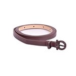 El cinto chocolate fino con hebilla es un accesorio elegante y sofisticado, ideal para complementar diferentes atuendos femeninos. Su diseño delgado y enrollado en espiral resalta la flexibilidad y suavidad del cinturón, aportando un toque moderno y refinado a pantalones, faldas o vestidos. La hebilla redondeada, forrada en el mismo cuero del cinto, proporciona uniformidad y un acabado cuidado, mientras que las costuras visibles cerca de la hebilla añaden un detalle artesanal que realza su estilo.