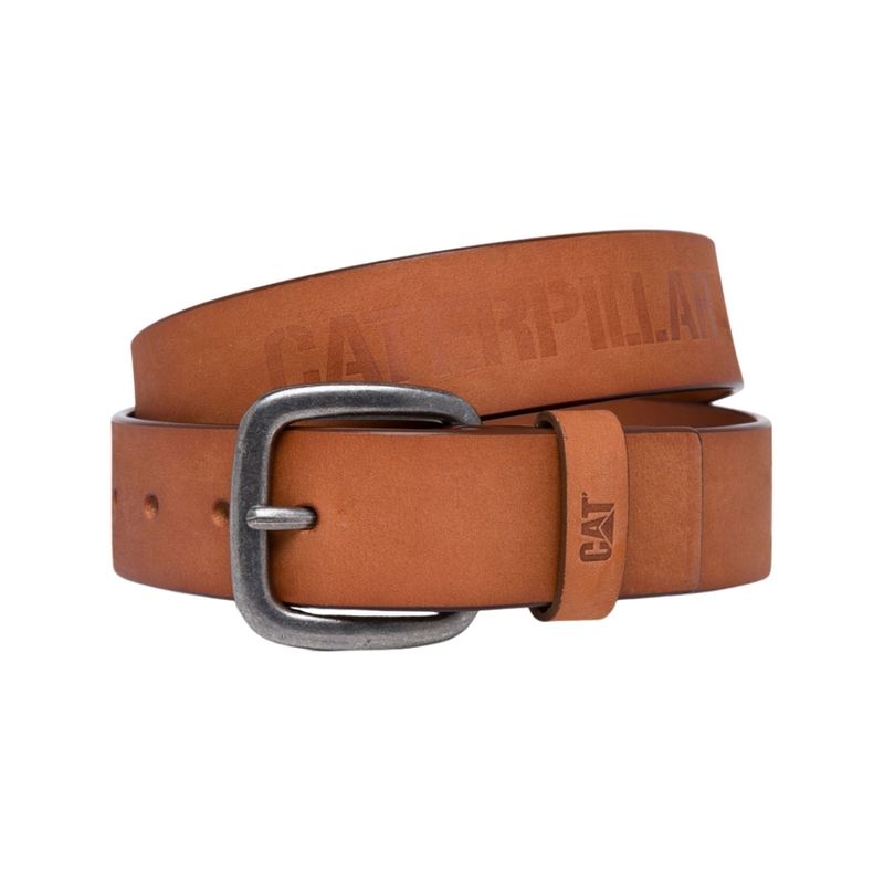 Cuenta con una hebilla metálica de estilo rústico que aporta un toque clásico y distintivo. El logo de Caterpillar está grabado en el pasador y la marca aparece en relieve a lo largo de la correa, destacando su identidad y calidad.