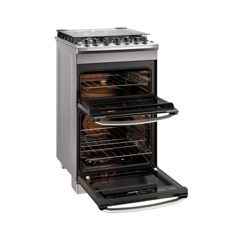 La cocina Electrolux combina potencia, diseño moderno y tecnología avanzada, ofreciendo un rendimiento profesional en el hogar. Con 4 hornallas y doble horno de 35 y 79 litros, permite cocinar múltiples recetas simultáneamente sin mezclar sabores ni aromas. Sus innovaciones como PerfectCook360, VaporBake y Vapor Regenerativo garantizan resultados óptimos en cada preparación, preservando sabor, textura y frescura.