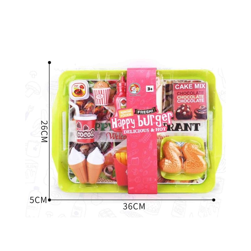 Estilo y Diversión: Este Cocina Set de 19 Piezas Cake Mix Happy Burger permite a los niños recrear divertidas experiencias de cocina, simulando la preparación de pasteles, hamburguesas y otros alimentos de manera segura y entretenida. Fomenta el juego imaginativo y creativo, ofreciendo horas de diversión mientras los pequeños aprenden a organizar y combinar los ingredientes.