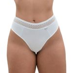 La Colaless Microfibra Con Encaje Blanco de Nayane Rodriguez es una prenda delicada y sofisticada que fusiona comodidad con un diseño elegante y femenino. Su cinturilla de encaje calado envuelve la cintura realzando la silueta y aportando un toque romántico. El diseño de doble tanga ofrece una cobertura adecuada mientras mantiene la sensualidad propia de la lencería fina.
