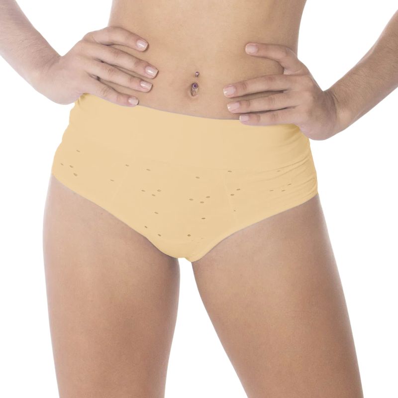 Confeccionado en una combinación de 91 % poliamida y 9 % elastano, ofrece suavidad, elasticidad y firmeza al mismo tiempo. El forro interior está compuesto por 100 % algodón, brindando mayor frescura y protección en la zona íntima.