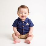 Su diseño equilibra lo formal y lo casual, por lo que puede utilizarse tanto en eventos y celebraciones familiares como en salidas cotidianas. El contraste entre el azul profundo y el beige neutro crea un look moderno, sobrio y fácil de combinar, pensado para niños con estilo propio.