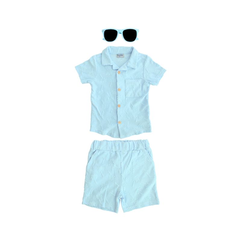 Conjunto Camisa Con Bermuda Lente De Sol Azul Claro Niño Tiny Tots