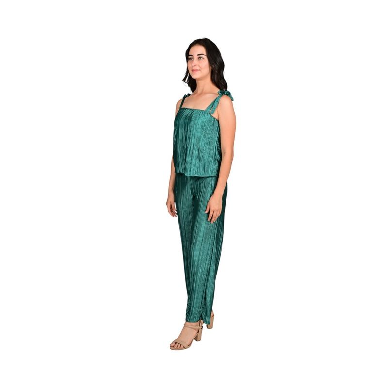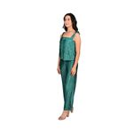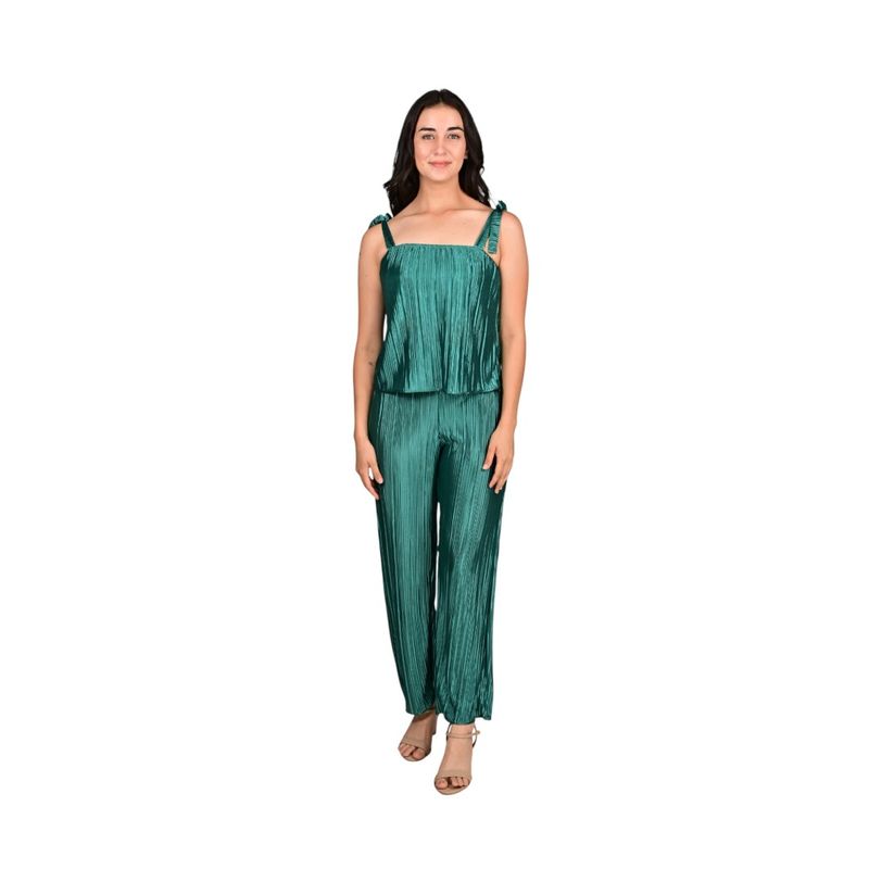 Este conjunto verde de L'Exclusif combina elegancia y comodidad, ofreciendo un look moderno y femenino. La solera fluida permite total libertad de movimiento, mientras que el pantalón palazo de pierna ancha aporta un toque sofisticado y versátil, ideal para diversas ocasiones.