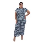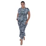 Conjunto femenino con blusa estampada de follaje en tonos azul y blanco, que aporta frescura y estilo moderno. La blusa cuenta con cuello redondo, mangas cortas integradas y detalle drapeado en la cintura, creando un ajuste cómodo y favorecedor. Perfecto para un look casual, fresco y versátil, ideal para el día a día o salidas informales.
