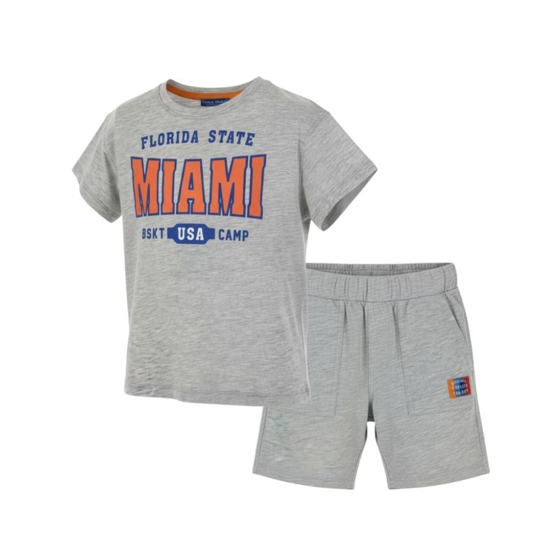 El Conjunto Miami Florida Gris Niño Original Marines es ideal para los días de juego y salidas casuales. Su diseño moderno y juvenil combina comodidad con un toque deportivo, destacando por su estampado central de gran tamaño.