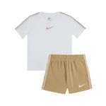 Conjunto deportivo diseñado para niños, que combina comodidad, estilo y libertad de movimiento. Ideal para entrenamiento, juegos al aire libre, running y actividades casuales. Sus colores blanco y beige ofrecen un look moderno y versátil, fácil de combinar con otras prendas y calzados Champion.