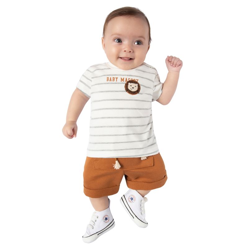 La remera de jersey presenta rayas modernas que aportan un look relajado y elegante. El aplique bordado en la parte delantera le da un toque único y encantador, destacando la atención al detalle en el diseño infantil. Su tejido ligero y transpirable asegura comodidad durante todo el día, manteniendo frescura y libertad de movimiento.