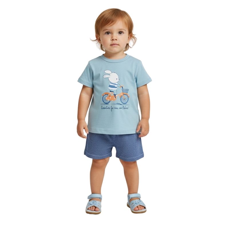 Este conjunto para bebé combina comodidad y ternura, ideal para los primeros meses de vida. La remera de manga corta junto al short con estampado de ositos ofrece un look adorable y práctico, perfecto para el juego diario, paseos o momentos de descanso.