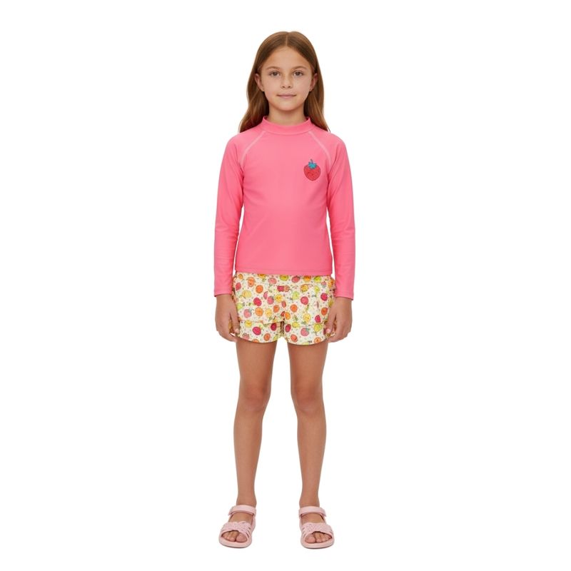 Este conjunto infantil combina comodidad y diversión con un toque colorido y alegre. La remera de manga larga ofrece mayor protección para los días frescos, mientras que el short mantiene la libertad de movimiento. El estampado de frutas aporta un diseño divertido y atractivo para las niñas, ideal para el juego diario y actividades al aire libre.