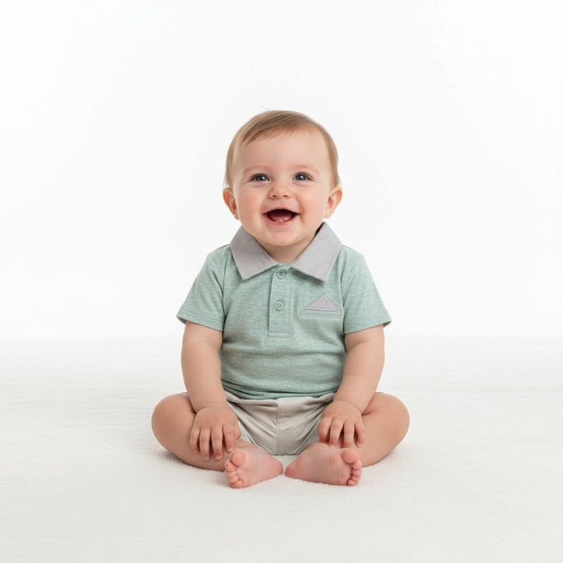El diseño fusiona la elegancia del corte polo con la practicidad de una prenda infantil, ofreciendo un conjunto versátil y adaptable tanto para eventos especiales como para el uso diario. Su estilo equilibrado permite al niño lucir bien vestido sin perder la comodidad necesaria para jugar, moverse y disfrutar cada momento.