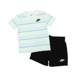 Este conjunto de Remera y Short Td Stripe Tee de Nike ofrece comodidad y estilo para los niños en sus actividades diarias. La remera de corte clásico con cuello redondo y mangas cortas se combina con un short ligero y funcional, formando un conjunto perfecto para jugar, hacer deporte o disfrutar del tiempo libre con total libertad de movimiento. El diseño a rayas aporta un toque moderno y versátil que se adapta a cualquier ocasión.