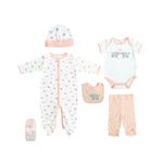Conjunto Set Ropa De Bebé 5 Piezas Estampado Elefantes Y Corazones Blanco Y Rosa Niña Tiny Tots