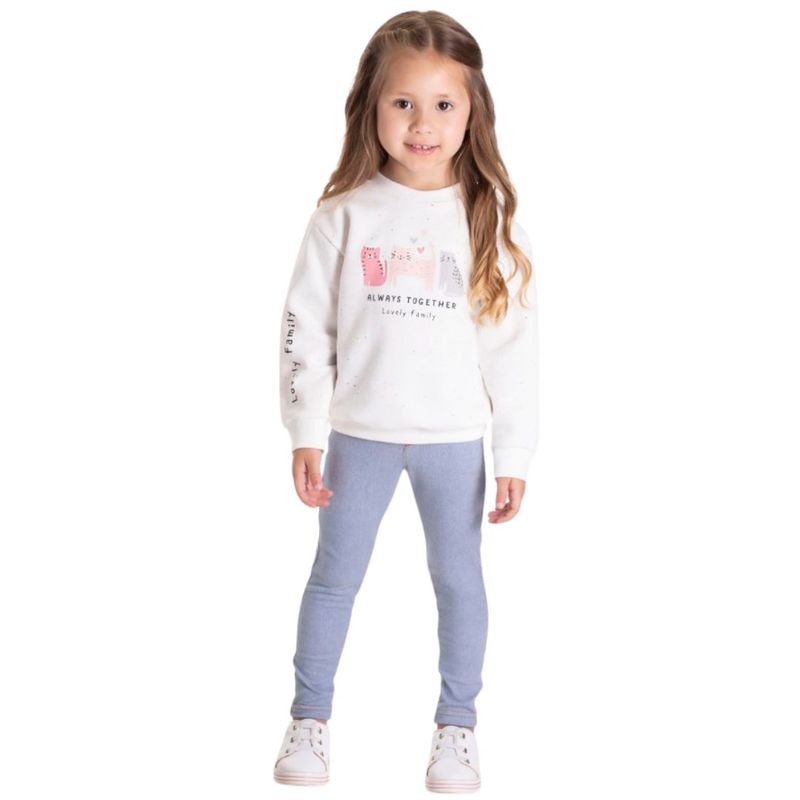 Sudadera confeccionada en algodón y poliéster, suave al tacto y abrigada. Leggings de algodón tipo denim, con elasticidad que se adapta al cuerpo sin incomodar.