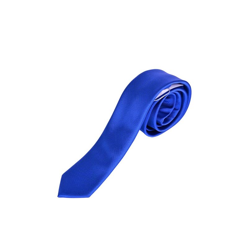 Esta corbata azul royal presenta un diseño clásico con un toque moderno, gracias a su patrón de rayas diagonales finas y casi imperceptibles, creadas por un delicado tejido texturizado. Su forma de punta fina le otorga un perfil estilizado y contemporáneo, ideal para quienes buscan un accesorio elegante que complemente tanto atuendos formales como semiformal.