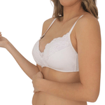 Corpiño confeccionado en tejido de lycra de algodón y encaje, con taza soft sin arco para un total confort, se adapta cómodamente a la silueta. Prácticos breteles regulables, detalle de coqueto moñito en el pecho, abrochado detrás.